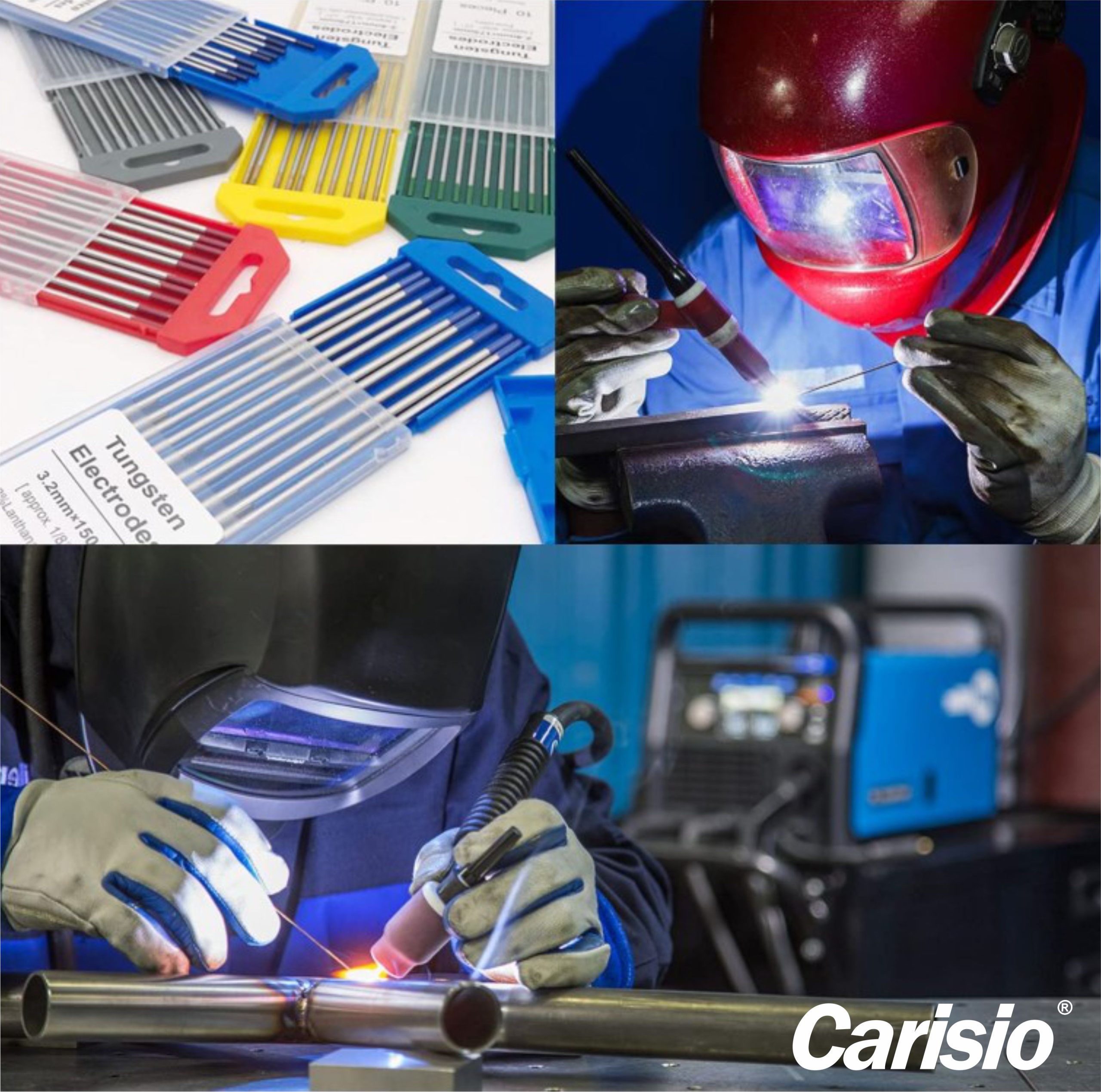 Electrodos TIG CARISIO de tungsteno puro, ideales para trabajos de soldadura en aluminio y magnesio, ofreciendo una excelente estabilidad de arco en corriente alterna.