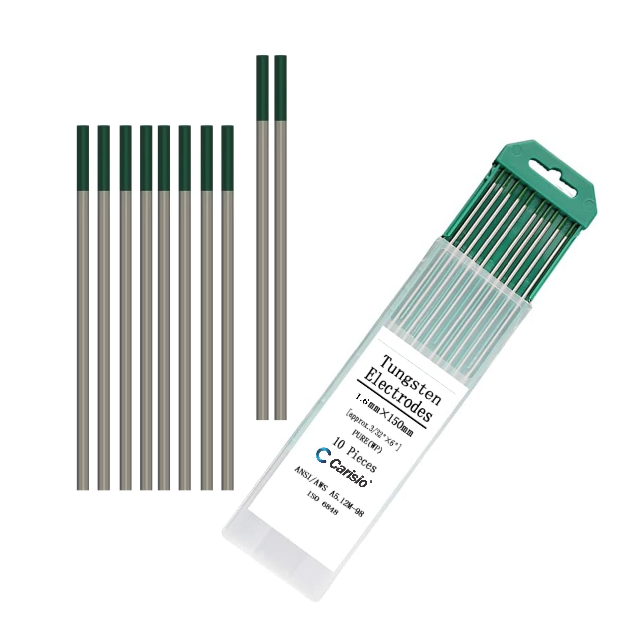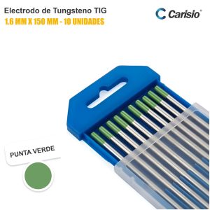 Electrodo TIG de Tungsteno Carisio Punta Verde – Caja x 10 Unidades
