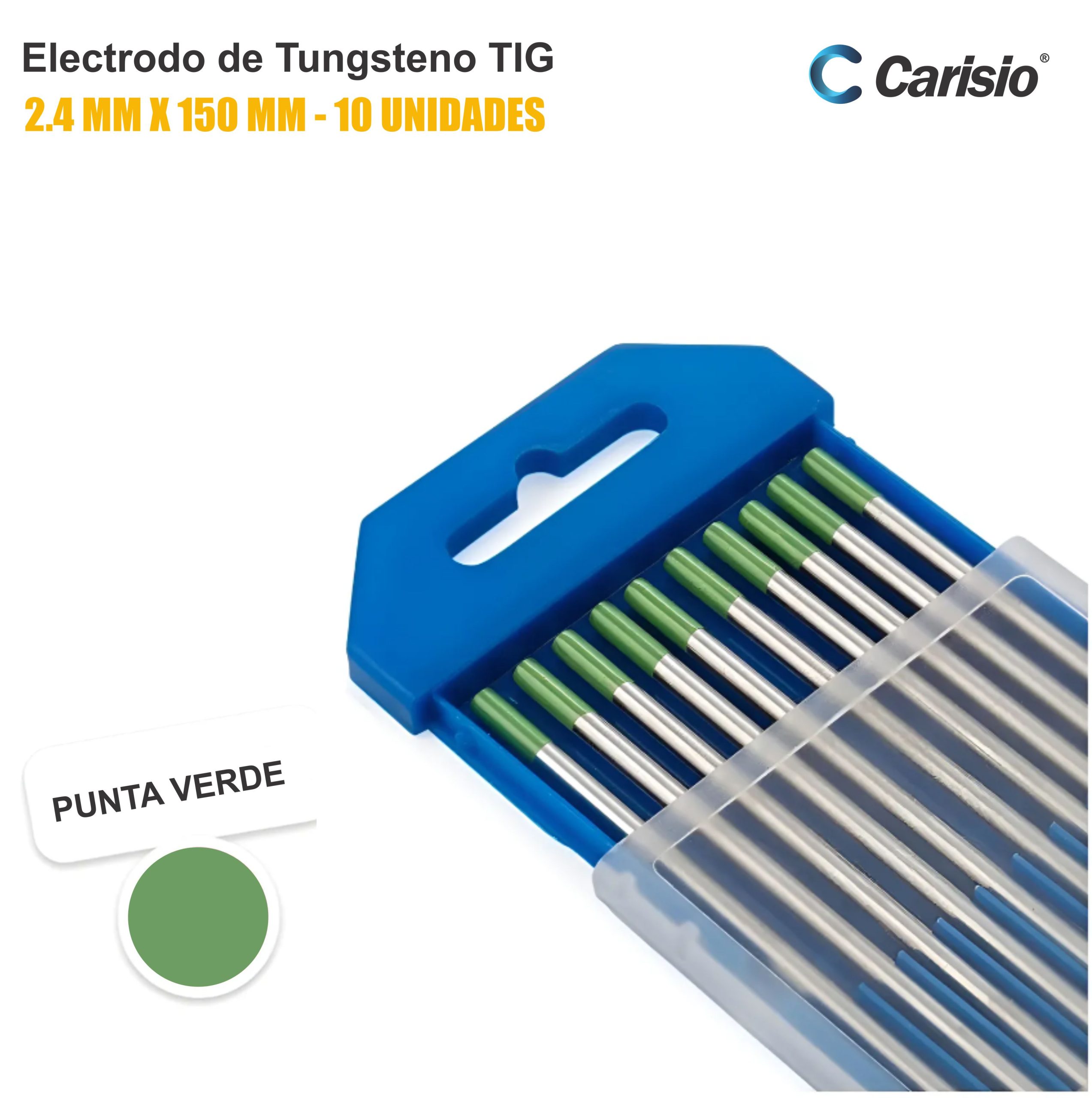 ELECTRODO DE TUNGSTENO PUNTA VERDE – CAJA X10 UNIDADES | CARISIO